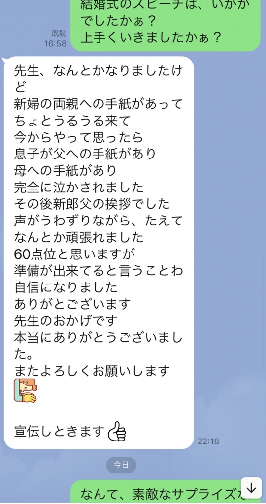 お客様の声・結婚式スピーチレッスン「50代、男性、U・Yさん」