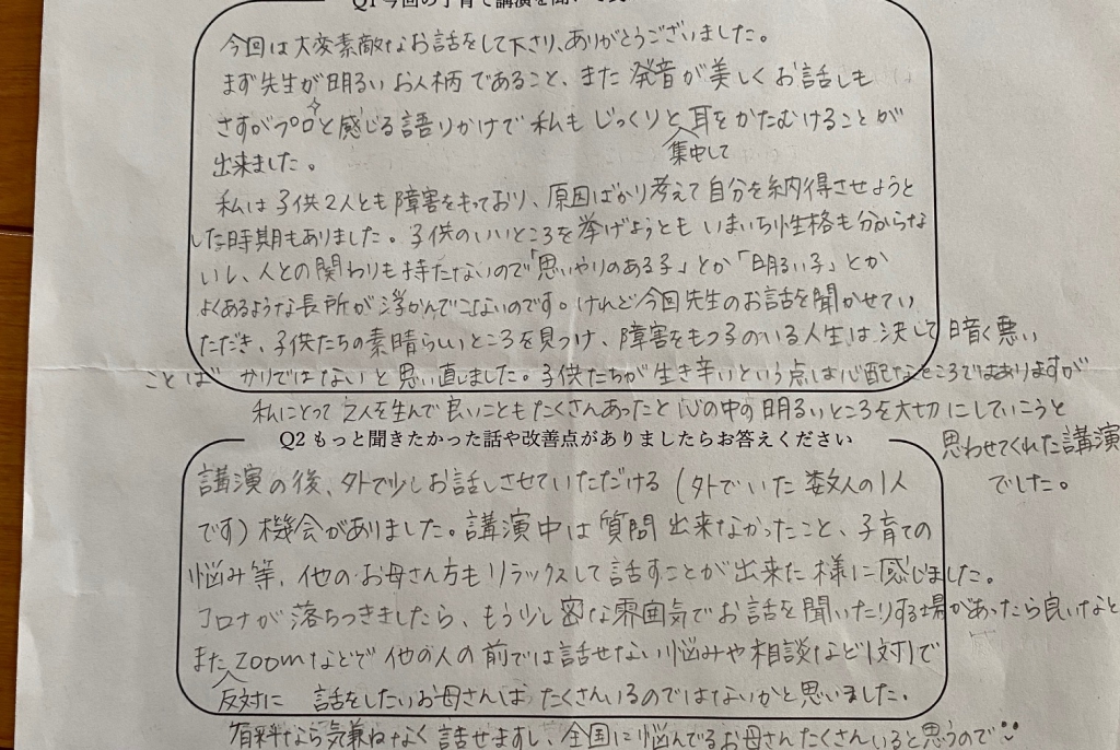 発達支援センターで、自閉症の子育て体験談をお伝えしましたたくさんのママ達からのご感想をいただき胸がいっぱいになりました。どん底自閉症の子育てが役に立てれば、本当に嬉しいです発達障がい子育て講演を聞いてくださったIさんのご感想です↓続いてSさ... -