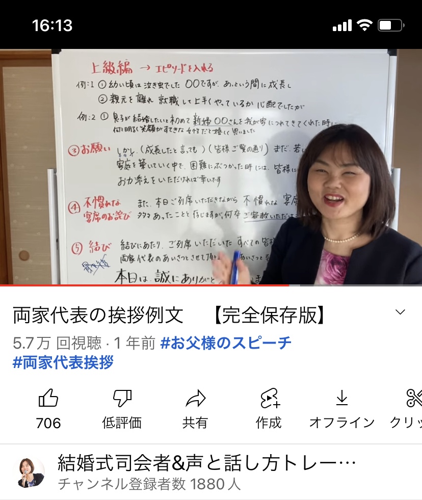 両家代表挨拶について解説をした私のYouTubeがなんと8万回以上再生されています。多くの方にご覧いただき感謝の気持ちでいっぱいです。自宅で撮影をして、編集も自分で行っていますので、出来の良いYouTubeではないですが・・・でも、多くの方々にありがた... -