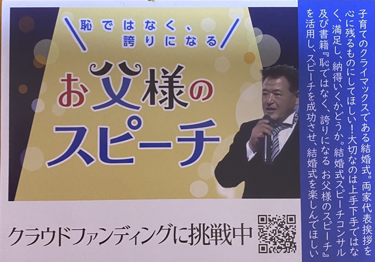 結婚式で、お父様のスピーチのサポート活動を広めるためにクラウドファンデングに挑戦します!ほとんどの新郎新婦は、「両親に感謝を伝えたい!」という気持ちで結婚式を挙げています。その結婚式が、お父様にとって負担になっていることがあるんです。な... -